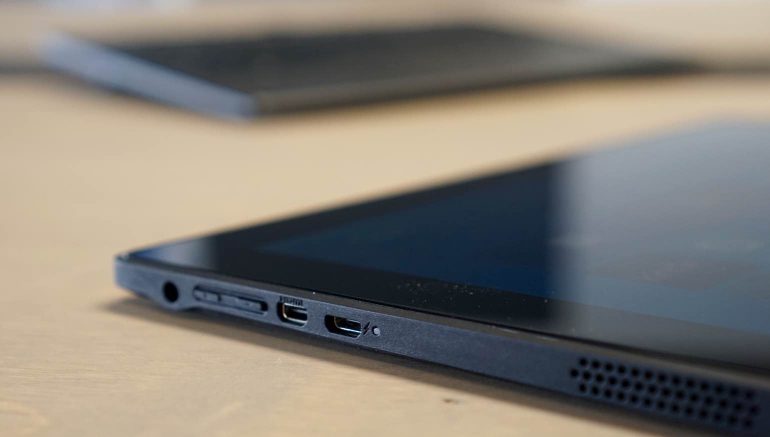 De Dell Venue 10 Pro 5000 is voorzien van een volledig formaat USB-poort, een microUSB-poort (opladen), een microHDMI-poort, een microSD-kaartlezer, Bluetooth 4.0 en Wifi a/b/g/n/ac. Niet alleen de moderne Wifi-chip is bijzonder (bijzonder welkom ook) maar deze Dell Venue 10 Pro 5000 is ook nog eens voorzien van NFC. Deze verbindingsmogelijkheden onderstrepen de doelgroep van de machine dan ook sterk; het is een hybride die bedoeld is voor de zakelijke omgeving (lees: warenhuizen, in het veld, etc. en niet in de ‘boardroom’) en voor scholen.