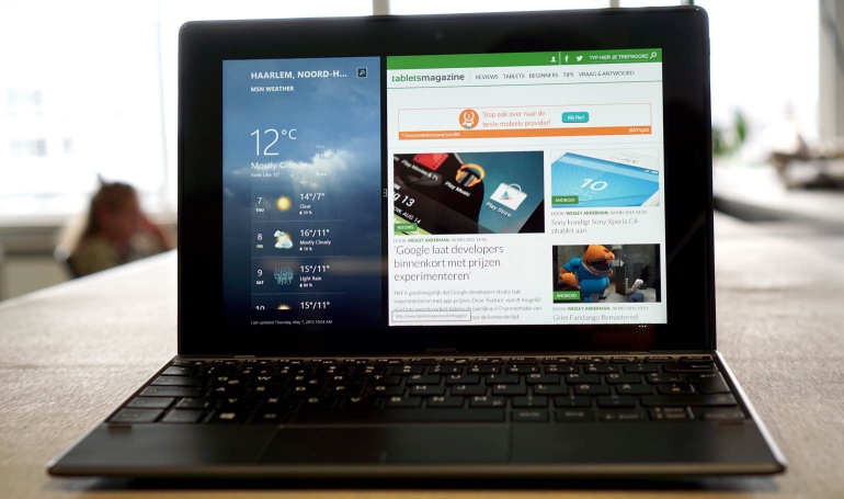 Bij normaal tablet/hybride gebruik gaat deze tablet zo’n 8 uur mee, en dat is voor een Windows tablet best ok. Natuurlijk hadden we graag een paar extra uurtjes gezien om zo veilig een dag aan de gang te kunnen met het systeem. Ook door het formaat en gewicht van de behuizing hadden we misschien iets te hoge verwachtingen van het de accuduur.