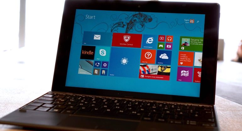 De Windows 8.1-installatie op deze Dell is opvallend simpel gehouden, schoon van vervuilende apps die vooral als verborgen reclame dienen. Dell zou Dell niet zijn als er toch nog een paar kleine sneaky reclames geïnstalleerd zouden zijn; maar als je eenmaal de McAfee installatie en link naar Amazon van je systeem verwijderd hebt kan je met een mooi schoon systeem aan de slag. Het enige echt fijne extraatje dat je van Dell krijgt bij deze Venue 10 Pro 5000 is 20GB Dropbox opslaggeheugen (1 jaar) en een Office 365-licentie (ook 1 jaar). Standaard is het aanbod van Windows-apps overigens gewoon goed, en voor al je overige wensen kun je terecht in de Windows Store, of met je traditionele software in de desktopomgeving. De Atom-processor en het kleine scherm zijn hier echter niet heel speciaal geschikt voor.
