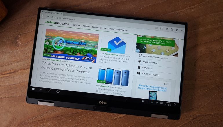 Het is duidelijk dat Dell de XPS 13 meer als laptop dan als tablet in de markt heeft gezet. En dat heeft ertoe geresulteerd dat we hem ook meer als laptop dan als tablet hebben gebruikt. Zo gek is dat niet, aangezien het toetsenbord daartoe uitnodigt met zijn fijne kwaliteit. Ook als je kijkt naar het gewicht van het apparaat in tabletmodus is het niet zo vreemd: het weegt ongeveer 1,3 kilo. Dat is nogal wat voor een tablet. Ook is ‘ie daar net even te dik voor (maximaal 13,7 millimeter). Daardoor kun je hem niet lang vasthouden als tablet.