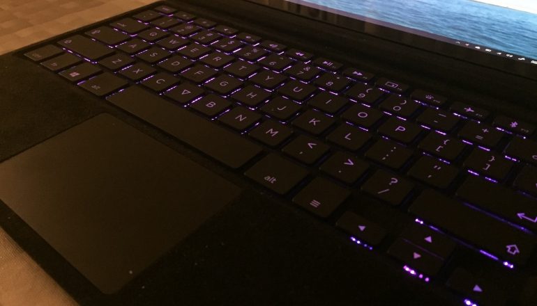 Het toetsenbord verdient nog een aparte vermelding. De zevenkleurige achtergrondverlichting hebben we al genoemd, druk op de functietoets en de V en je kunt die wisselen. Omdat wij tijdens de review niet één maar twee Eve V’s hebben ontvangen, gebruikten wij die toetsenbordverlichting om beide apparaten uit elkaar te houden. Wat er in het donker soms uitzag alsof we met kerstverlichting zaten te werken. Het toetsenbord is bekleed met een stof die aanvoelt als textiel, maar het is in tegenstelling tot deze stof erg stevig en zeer makkelijk schoon te maken.