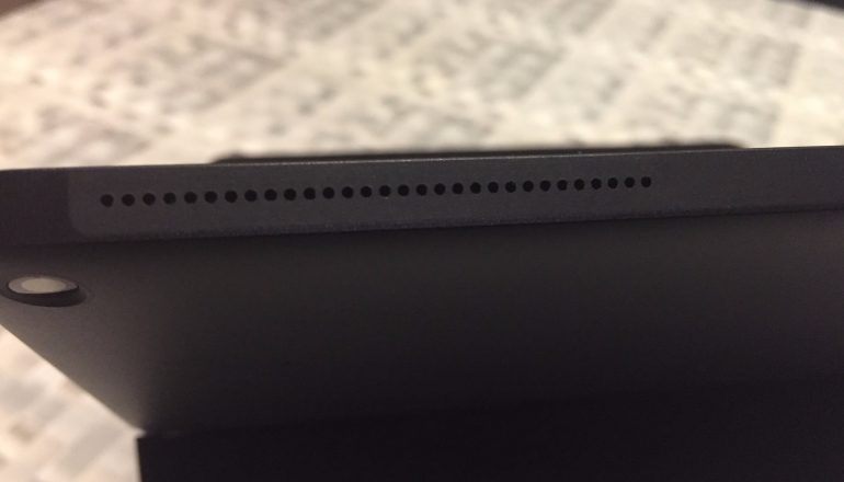 Tussen de speakers bevinden zich twee microfoons. Die filteren achtergrondgeluid uit, en zijn geschikt voor gebruik met de spraakassistent Cortana van Microsoft. We hebben de microfoons op de tablet aan de zwaarst mogelijke test onderworpen: het spraakherkenningsprogramma Dragon NaturallySpeaking in een vrij lawaaiige omgeving. Dat liep aanvankelijk uit op een teleurstelling; als je op een halve meter afstand tegen het apparaat praat, komt er allemaal wartaal in beeld. Maar zodra je je mond vlakbij deze twee speakers laat praten, wordt elk woord correct herkend. Kortom, uitstekende microfoons, maar geen richtmicrofoons.