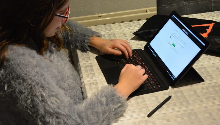 Het is uiteraard een aanraakscherm. De gevoeligheid hiervan heeft ons niet teleurgesteld. De bijgeleverde pen kan ook het scherm bedienen en je kunt ermee tekenen en schrijven. Hoewel deze pen van mindere kwaliteit is dan de Surface Pen – die 4096 drukniveaus heeft tegen 1024 drukniveaus voor de Eve V-pen – hebben we in het gebruik hiervan niet meegemaakt dat er problemen door ontstonden. We konden er zeer precies mee op het scherm schrijven en tekenen. En belangrijk: de pen van de Eve V zit er gewoon gratis bij, in tegenstelling tot de stylus die vele andere fabrikanten leveren.