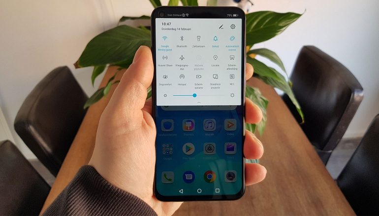 Omdat de Honor View 20 van de nieuwste Kirin-chipset is voorzien, kun je er gelukkig op rekenen dat het een razendsnel toestel is. De hoeveelheid werkgeheugen draagt daar ook aan bij. Daardoor hoef je je dus voorlopig geen zorgen te maken over de specs van je smartphone: je kunt allerlei games spelen, zonder vertragingen of andere irritante dingen. Boven zit die camera, in het gat in het scherm, niet in de weg, zeker niet wanneer het scherm donker is. Hij valt eigenlijk alleen op wanneer je lichte of witte beelden aan het bekijken bent.