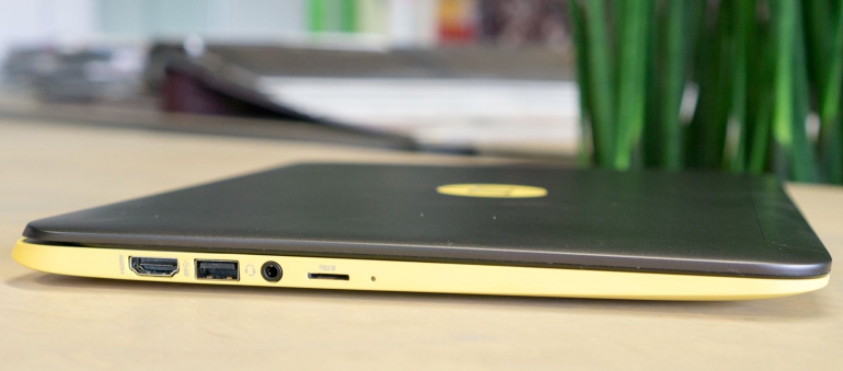 Maar het meest opvallende aan deze laptop is natuurlijk de kleurencombinatie waarvoor gekozen is. HP heeft een soort antraciet grijs gecombineerd met geel, zoals je kan zien op de foto’s. De basis is grijs met verschillende gele accenten in het logo, het scharnier en rondom het toetsenbord. De gehele onderkant is overigens geel maar dat zie je tijdens normaal gebruik natuurlijk niet echt. Wat mij betreft is dit een van de meeste geslaagde kleurencombinaties die ik de laatste jaren gezien heb.