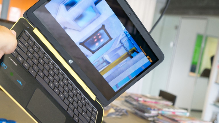 Het kan wel maar echt handig is het niet. Een spel als Runbot werkt bijvoorbeeld heel leuk met het touchscreen maar zodra de laptop van links naar rechts gekanteld moet worden om obstakels te ontwijken is het opeens minder goed te doen. Maar de prestaties van de processor zijn in dit geval dus niet het probleem.