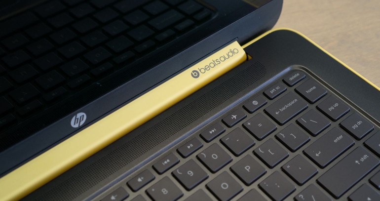 De overige twee speakers zitten aan de onderkant van de laptop, aan de kant van het muisvlak. Hierdoor is er een goed stereo effect hoorbaar. De speakers kunnen lekker hard en hebben zelfs op volledig volume geen noemenswaardig last van vervorming van het geluid. Natuurlijk missen ook deze speakers wel de echte bass, de lage tonen. Aan de natuurkundige beperkingen van kleine speakers kan ook een bedrijf als Beats kennelijk niets veranderen.