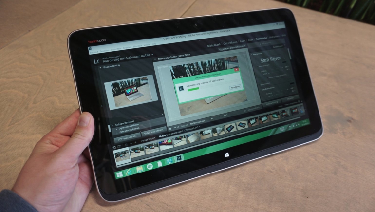 Dat de desktopomgeving goed bruikbaar is heb ik al gezegd, en HP lijkt het ook te willen bewijzen want de enige meegeleverde app is een vrij bijzondere. Adobe Lightroom 5 is namelijk als enige echte app (er zijn ook wat reclame en HP specifieke apps) meegeleverd. Dit is een prachtig mooi fotobewerkings- en management-tool. Niet iedereen zal hier mee uit te voeten kunnen maar deze software is een bekend Adobe product onder (hobby en professionele) fotografen. Normaal gesproken kost deze software 150 euro. Hoewel ik het persoonlijk een heel fijne en bruikbare app vind (ik gebruik Lightroom zelf dagelijks) had ik toch liever gezien dat dit budget uitgegeven was aan het toevoegen van Microsoft Office, dat blijft toch de reden dat de meeste mensen Windows kopen en ‘nodig’ hebben.