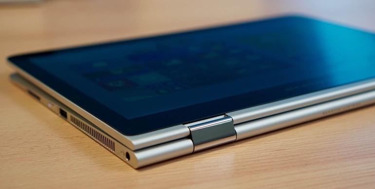 Dit is een hybride laptop die de designkeuzes en handigheden volgt die Lenovo heeft geïntroduceerd met hun Yoga-lijn. Deze laptop is dus voorzien van een een extreem flexibel scharnier zodat de het scherm volledig naar achteren geklapt kan worden om zo als ‘tablet’ te worden gebruikt. Tijdens dat naar achteren vouwen van het scherm zijn er ook andere posities bruikbaar, posities die van discutabele toepasbaarheid zijn.