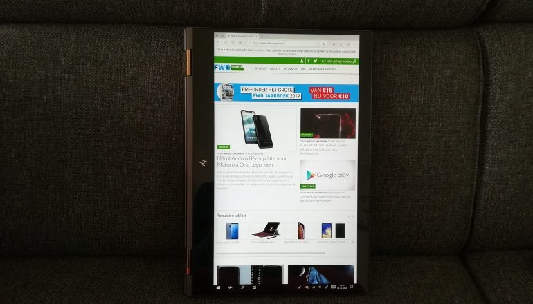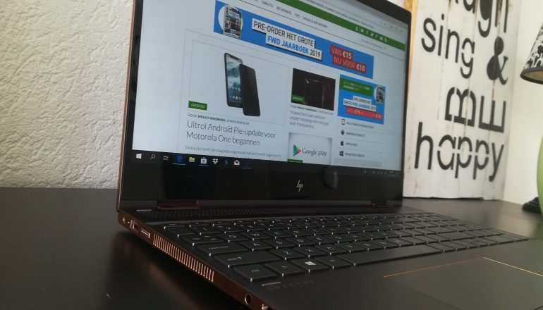 De HP Spectre x360 in 15,6-inch (39,6 centimeter) heeft een resolutie van 3.840 bij 2.160 pixels. Het 4k ips BrightView wled-backlit touchscreen met Corning Gorilla Glass kun je zo helder instellen dat het bijna pijn doet aan de ogen, en dat is in dit geval zeker geen nadeel. Het contrast van het scherm is prima en ook de kleurweergave is dik in orde. Foto’s in hoge resolutie bewerken of bekijken of een video in een 4k-resolutie bewonderen is een lust voor het oog. De schermranden aan de zijkant zijn relatief dun, maar boven en onder iets dikker, mede door de camera die we bovenaan het scherm vinden. Storend is het zeker niet, want bij een convertible die je ook als tablet kunt gebruiken wil je liever geen hele dunne schermranden, omdat je anders al snel per ongeluk het scherm aanklikt in de tabletstand. Het touchscreen werkt verder ook snel en responsief en het display is afgewerkt met glas, wat het premium design uiteraard nog verder ten goede komt. Komt er veel daglicht naar binnen of zit je buiten te werken met deze convertible? Dan heb je wel last van spiegelingen op het scherm.