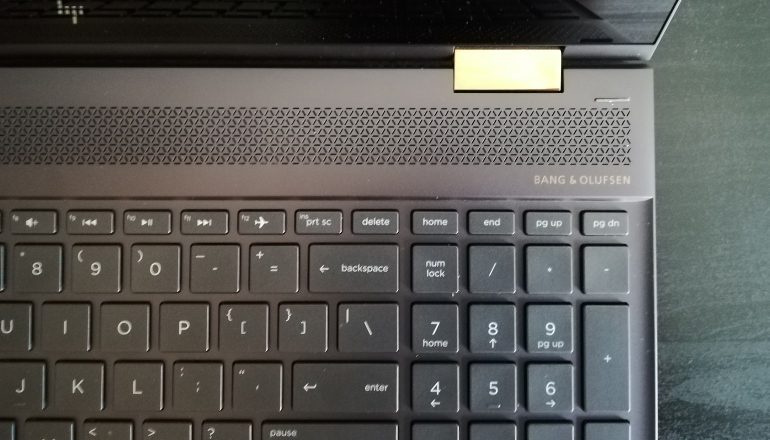 De convertible is voorzien van vier luidsprekers van Bang & Olufsen. Deze bevinden zich boven het toetsenbord en beslaan nagenoeg de gehele breedte van het model. Het is verbazingwekkend wat voor geluid er uit dit model komt. In vergelijking met echte speakers laat het natuurlijk nog heel wat te wensen over, maar voor laptopspeakers voldoen ze meer dan voldoende. Via Bang & Olufsen Audio Control kun je zelf nog enkele instellingen wijzigen, zoals Bass, Treble en Dialog Clarity. Tevens kun je verschillende standen kiezen voor muziek of film. Alhoewel de instellingen een duidelijk verschil in audio laat horen, moet je zeker niet verwachten dat de ramen uit de voegen trillen wanneer je de bass op vol zet. In een laptopspeaker kun je nu eenmaal niet teveel van de bass verwachten. Het volume kan wel lekker hard en het geluid blijft dan nog altijd redelijk helder. De speakers zijn dan ook op z’n best als je de radio lekker als achtergrond aan laat staan, want de speakers van Bang & Olufsen in deze convertible gaan het zeker winnen van de (goedkope) radio’s die in menig kantoorgebouw staan. In combinatie met het 4k-scherm is de HP Spectre x360 dan ook echt een multimediabeest, want je zult niet snel een dergelijke convertible vinden die zo’n goede multimedia-ervaring biedt als deze HP Spectre x360 in 15,6-inch.