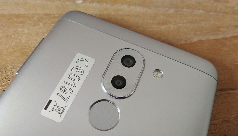Op de achterkant treffen we een camerasysteem aan met twee camera’s, die verticaal geplaatst zijn. Daardoor zit nog een cirkel, met daarin de vingerafdruklezer. Verder vinden we hier nog een flitser. Van een afstand ziet het er mooi en best premium uit — je zou niet meteen denken dat je te maken hebt met een smartphone die minder dan 300 euro kost. Links, aan de zijkant, zit de sleuf voor de micro-sd- en simkaart en rechts (eveneens aan de zijkant) treffen we de volume- en standby-knoppen aan. Heel rechttoe, rechtaan, maar doeltreffend.