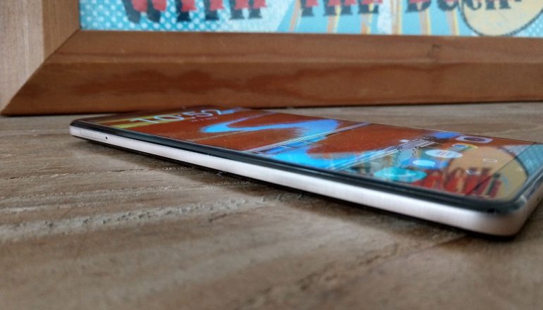 Het toestel is ook relatief zwaar te noemen, maar dat bedoelen we allerminst als minpunt. Het is juist fijn om een beetje gewicht vast te houden, zodat je ook niet snel het idee hebt dat-ie uit je handen valt (of dat je dat idee steeds hebt). Daarnaast voelt die subtiele bolling best fijn aan in de hand. Als we bijvoorbeeld de Motorola Moto Z2 Force er nog eens bij pakken (met zijn rechte achterkant), dan voelt het in één klap heel onwennig aan. De bolling op de achterkant is overigens bijna niet op te merken als je er naar kijkt, maar het voelt wel goed.