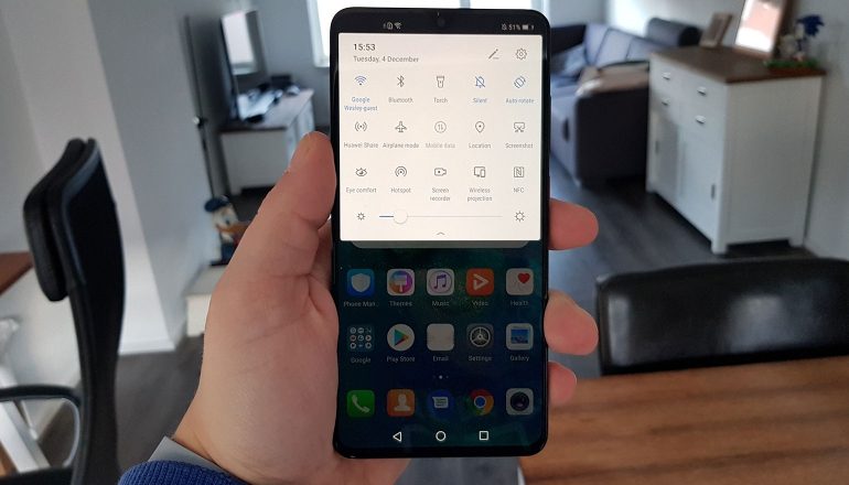 Het lcd-scherm van de Huawei Mate 20 is groter dan het scherm van de Mate 20 Pro. Dat kan voor sommige mensen een belangrijke factor zijn. Zeker in het begin valt op hoe groot 6,53-inch aan schermoppervlakte nou eigenlijk is. Combineer dat met die notch in de vorm van een waterdruppel en je hebt genoeg ruimte voor notificaties, foto’s en natuurlijk al het andere dat je wil doen. Echter, die grotere scherm heeft ook zo zijn nadelen. Zo heeft Huawei ervoor gekozen om de resolutie relatief laag te houden (in vergelijking met die Mate 20 Pro).