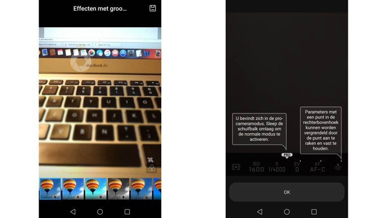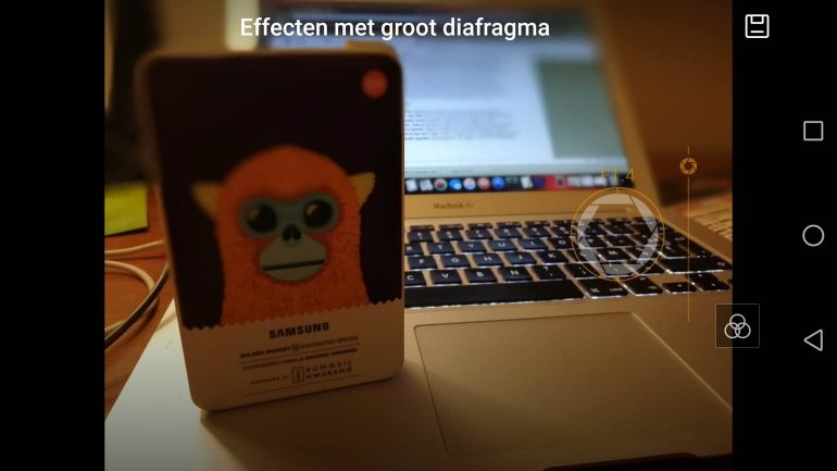 Bij het fotograferen maak je ook kennis met een nieuwe eigenschap geïntroduceerd met EMUI 5.0, de skin die Huawei bovenop Android plaatst. Door vanaf bepaald schermranden naar binnen te vegen, worden menu’s zichtbaar. Doe je dat bijvoorbeeld van de rechterrand, dan kom je in een PRO-modus terecht waar je aardig wat cameravariabelen snel kunt aanpassen. Het is een leuk idee, maar onvoldoende in de kijker gezet. Er zijn niet zoveel visuele signalen die aangeven dat vegen menu’s kan oproepen.