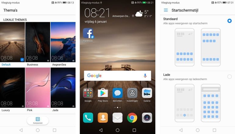Globaal genomen is EMUI 5.0 heel wat cleaner en visueel ook wat mooier dan voorheen. Dat komt ook wel omdat Huawei zijn eigen frivoliteiten wat links laat liggen en grijpt naar de standaardlook van Android. Maar niet getreurd: Huawei blijft een heel hoop thema’s meeleveren en biedt er veel downloadbare aan. Het mooie hier is dat die thema’s je Mate 9 echt een volledige make-over geven en niet zomaar een nieuw achtergrondplaatje en kleurtje.