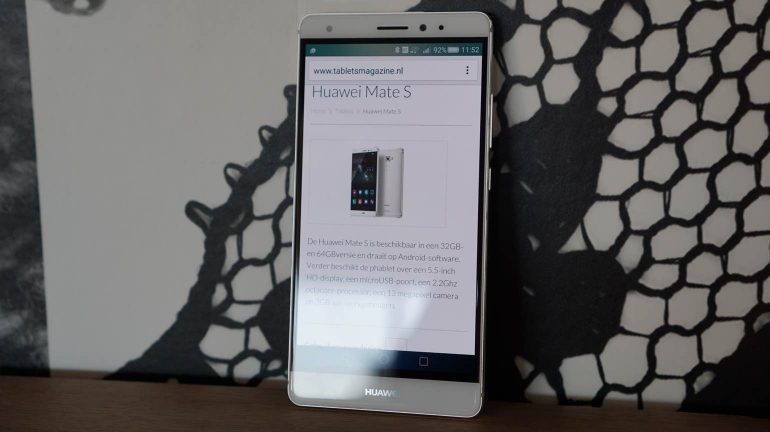 Het 5.5 inch amoled-display heeft niet de meeste pixels want er zijn ‘maar’ 1920 x 1080 pixels gepropt in het scherm. Ondanks dat ik hier dus niet kan lopen brullen over vier keer HD of QWUAUQGOSA (ofzo) komt het erop neer dat de Huawei Mate S een ppi kent van ruim 400 pixels per inch, meer (veel meer) dan goed genoeg om super scherpe teksten te renderen en veel details in afbeeldingen en interface te tonen.