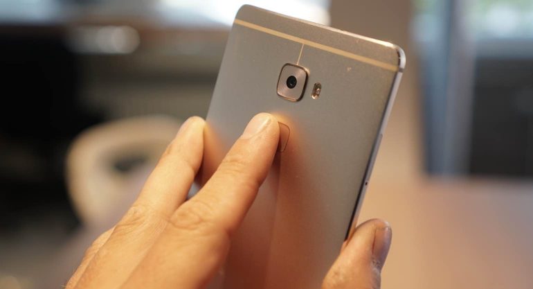 Door deze keuze moest de vingerafdrukscanner natuurlijk ergens anders geplaatst worden en dat is net onder de camera achterop, mooi in het midden. Dit is een opvallend slimme plek voor de scanner en een natuurlijke plek om je vinger te laten rusten. De scanner is extreem snel en betrouwbaar, en is volgens ons misschien wel de allerbeste scanner op de markt. De behuizing is overigns aan de achterkant ook licht gebogen zodat de de randjes nog dunner zijn dan de algemene 7.2mm diepte van de behuizing.