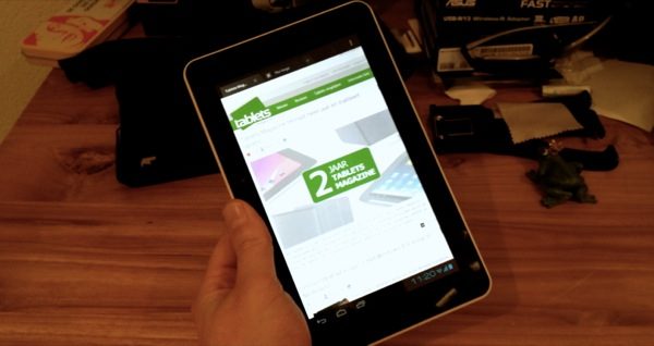 Zoals gezegd is het dus een 7 inch display met 1.024 bij 600 pixels en hoewel de kijkhoeken goed zijn en kleurweergave prima is ben ik niet erg onder de indruk. De 16:10 beeldverhouding en het relatief beperkte aantal pixels betekent dat je bijvoorbeeld op deze site altijd zult moeten inzoomen om tekst te kunnen lezen, een probleem waar ik verderop in de review nog op terugkom. Voor video’s en spelletjes is het display echter prima.