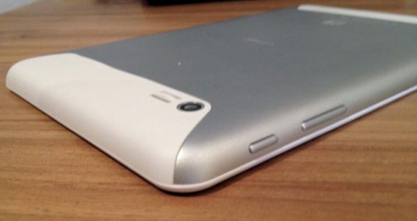 Als je de Google Nexus 7 kent dan komt deze tablet je ook bekend voor. Het is een beetje inherent aan het feit dat het een 7 inch Android tablet is natuurlijk maar toch heeft Huawei een paar keuzes gemaakt die het wel degelijk een ander ogend apparaat maken. De gebruikte materialen zijn een stuk luxer te noemen en de combinatie tussen een aluminium achterkant en glazen voorkant met wat witte plastic accenten maakt dat het een mooi stevige tablet is. Net als bij de iPad mini zit er een randje om het scherm dat schuin afgewerkt is, een champfered edge.