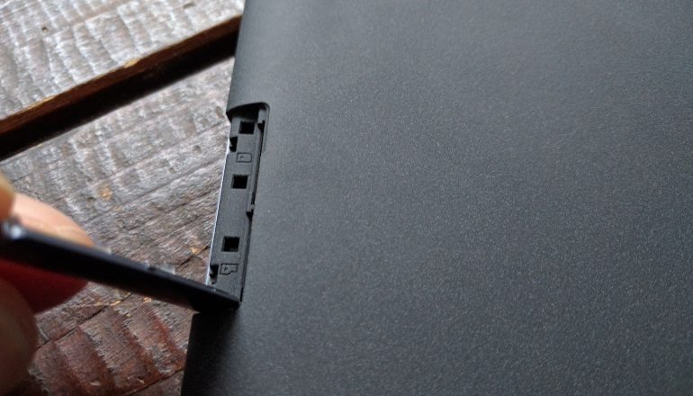 Aan de rechter- en onderkant van de tablet zit helemaal niets, wat er onder andere voor zorgt dat het apparaat zo’n strak uiterlijk heeft. Links bevinden zich verder alle opties. Zo zitten daar de volumeknoppen, evenals de knop voor het aan- en uitzetten. Ook kun je een klepje omhoog halen, waar je de sim- en micro-sd-kaartsleuven aantreft. Of je die sleuven nou gebruikt of niet, ze zijn netjes weggewerkt. Ook de knoppen zijn niet heel opvallend en reageren goed op het drukken. Wat wel jammer is, is de dikke rand aan de voorkant, boven het scherm.