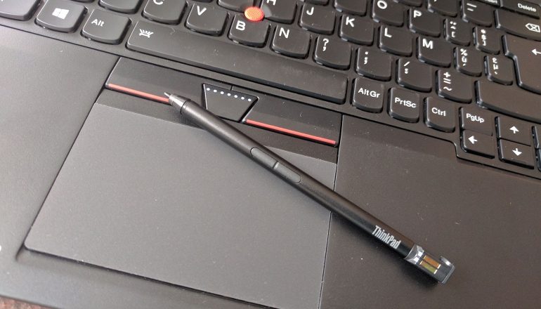 De Lenovo ThinkPad Yoga 260 wordt ook geleverd met een stylus. Die vind je aan de zijkant van het apparaat, naast de knop voor het aan- en uitzetten van de convertible. Deze kun je heel goed gebruiken voor het maken van aantekeningen of het tekenen van dingen, aangezien we geen lag of iets dergelijks hebben opgemerkt. Ook is het zo dat je handpalm op het scherm kan leunen tijdens het tekenen en schrijven, aangezien die niet als input wordt herkend wanneer je met de stylus bezig bent. Een snelle en betrouwbare accessoire.