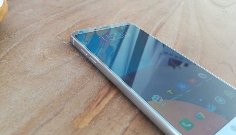 Het grote scherm aan de voorkant is 5,7-inch groot en oogt fantastisch. De schermranden zijn dun (vooral aan de zijkant, maar ook aan de boven- en onderkant) en zullen ongetwijfeld snel achterhaald zijn, zeker met de release van de Samsung Galaxy S8 en toestellen zoals de Xiaomi Mi Max. Maar dat betekent niet dat je er niet van kunt genieten. De randen aan de zijkant zijn namelijk erg onopvallend – zeker in de avond – maar dat is natuurlijk de waarde die je er zelf aan zult hechten. Het is in elk geval een stap vooruit na de LG G5 en Nexus 5X.