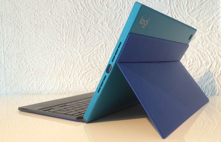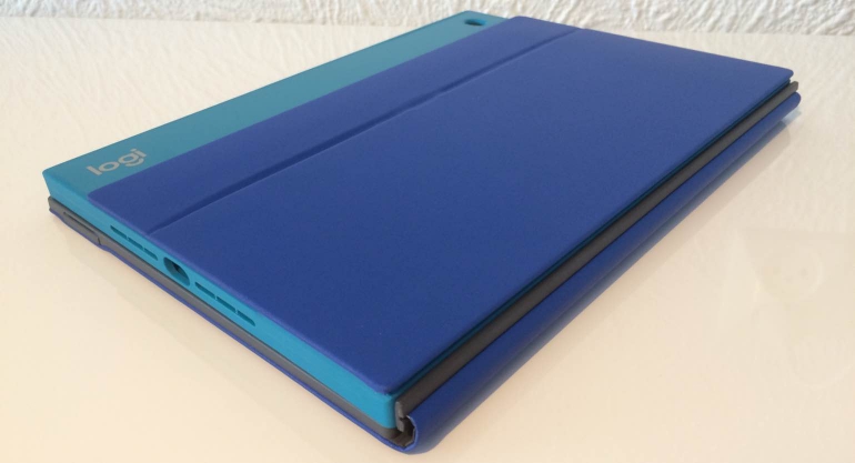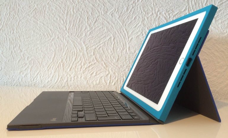 Het toetsenbord doet tegelijkertijd dienst als cover voor de voorzijde en is dan ook voorzien van hetzelfde zachte ‘stoffen’ materiaal dat de accessoire een premium gevoel meegeeft. Maar, eenmaal open is de cover een volledig QWERTY-toetsenbord waarmee bijzonder fijn getypt kan worden. Zoals we inmiddels van Logitech gewend zijn is het toetsenbord van boven gemiddeld goede kwaliteit; met een prima travel en voldoende ruimte tussen de toetsen. Ook zijn er diverse toetsen aanwezig waarmee iOS direct bediend kan worden, bijvoorbeeld voor het terugkeren naar het beginscherm, het opstarten van de browser of het zoeken naar apps via Spotlight. Het toetsenbord is wat klein voor de gemiddelde laptopgebruiker maar dit levert geen noemenswaardige beperkingen op tijdens het typen; dat gaat verrassend snel en accuraat. Daarbij belooft Logi een batterijduur van 4 jaar voor het toetsenbord, dat overigens snel en eenvoudig middels Bluetooth met de iPad verbonden kan worden. Het toetsenbord doet dus ook dienst als bescherming voor het display maar kan ook compleet losgekoppeld worden waardoor je eigenlijk de Protective Shell met ingebouwde standaard krijgt. Dit is handig wanneer je even niet productief aan de slag wilt en de iPad gewoon in de hand wilt houden. Het koppelen gaat dankzij een magneet vrij eenvoudig en zelfs wanneer je wat drukker aan het typen bent of het touchscreen bedient blijven iPad en toetsenbord prima gekoppeld.