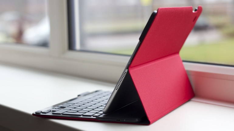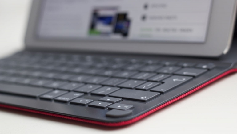 Het toetsenbord maakt draadloos verbinding met de iPad, middels Bluetooth. Deze verbinding is eenvoudig en snel tot stand gebracht; zet de iPad op het toetsenbord en zoek op je iPad het toetsenbord bij Bluetooth-apparaten. Tik op de naam van het toetsenbord en je kunt aan de slag. De toetsen zijn voorzien van een fijne structuur waardoor je vingers er niet snel afglijden en bieden voldoende travel voor een comfortabele typ-ervaring. Ook is er voldoende ruimte tussen de toetsen waardoor je niet snel een verkeerde toets zult raken. Het materiaal rondom de toetsen is echter nogal glad en kan snel plakkerig overkomen, een klein minpuntje. Volgens Logitech gaat het toetsenbord een maand of drie mee op een volledige lading (3 uur laden). Helaas hebben we dat niet kunnen testen dus dat nemen we dan maar aan. Handig is wel dat het toetsenbord zelf uitschakelt wanneer deze niet gebruikt wordt.