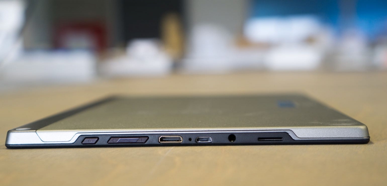 Tablets uit het budgetsegment zijn doorgaans niet al te hip qua design. Ook qua afmetingen en gewicht mag je niet al teveel (of weinig) van een budgettablet verwachten, en de Medion Lifetab S10333 is hier geen uitzondering op. Toch moet je na deze kanttekening als reviewer ook direct noemen dat de saaie en zware (580 gram) behuizing van de Medion Lifetab S10333 erg solide aanvoelt, met de bouwkwaliteit lijkt het dus goed te zitten. Ook de materialen die gebruikt zijn voelen goed aan. De aluminum achterkant en een glazen voorkant worden bijeengehouden door beperkte plastic onderdelen die ook direct de ruimte bieden voor de verschillende aansluitingen.
