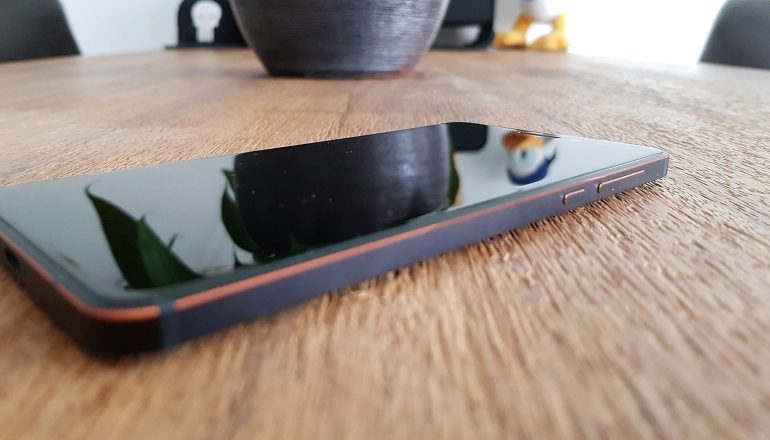 Het is waarschijnlijk even wennen aan het formaat en de vorm van de Nokia 6 (2018) wanneer je hem voor het eerst vast hebt, maar over het algemeen ligt het toestel lekker in de hand. Hij is wel een beetje breed, maar gelukkig niet ontzettend zwaar. De achterkant heeft een lichte bolling, waardoor comfortabeler in je handpalm moet liggen. Die bolling is echter zo subtiel dat je goed moet kijken om hem te zien, maar hij is er wel degelijk. Daarnaast is het helaas zo dat de cameramodule wat ons betreft te uitgestrekt is.