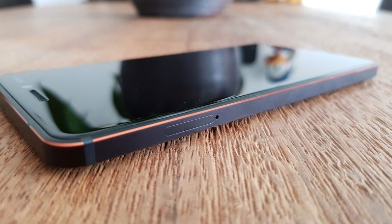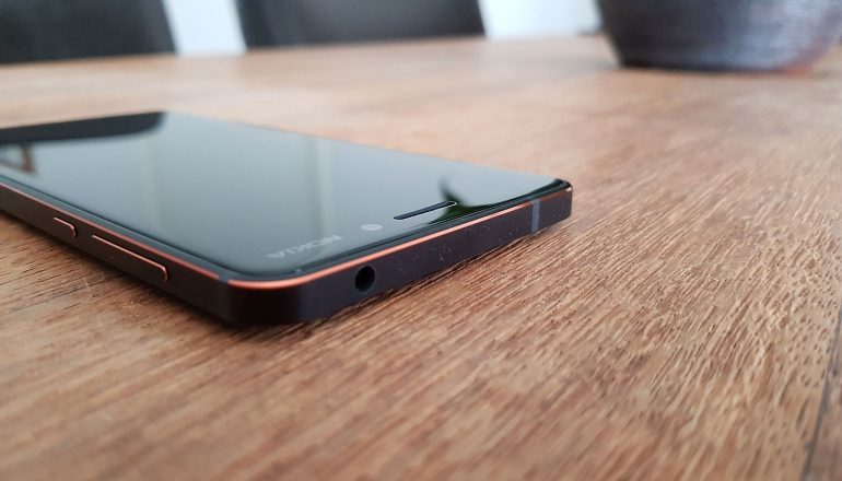 Naast de koperen afwerking is Nokia 6 voornamelijk zwart en die kleurencombinatie oogt prettig. Rechts zitten de twee knoppen (energie en volume), terwijl aan de onderkant de mono speaker en de usb-c-aansluiting zit. Dat is een upgrade in vergelijking met het model van vorig jaar, dat in het bezit is van een micro-usb-aansluiting. Verder zit bovenop de koptelefoonaansluiting (yes!) en zit aan de achterkant de ronde vingerafdrukscanner. Boven die scanner treffen we een enkele camera aan, met daaronder weer ruimte voor een flitser.