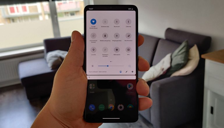 Daarnaast kun je de lade met recente apps openen door dezelfde beweging te maken en in het midden van het scherm even te wachten. Teruggaan doe je door van links of rechts naar het midden van het scherm te vegen, aan de onderkant. Het is even wennen; vooral het teruggaan went gelukkig snel. De rest voelt minder intuïtief aan. Gelukkig laat Android je ook terugkeren naar de navigatie met drie knoppen. We missen eigenlijk de bediening van Android 9.0 Pie, waar we geleerd hebben twee knoppen te gebruiken.