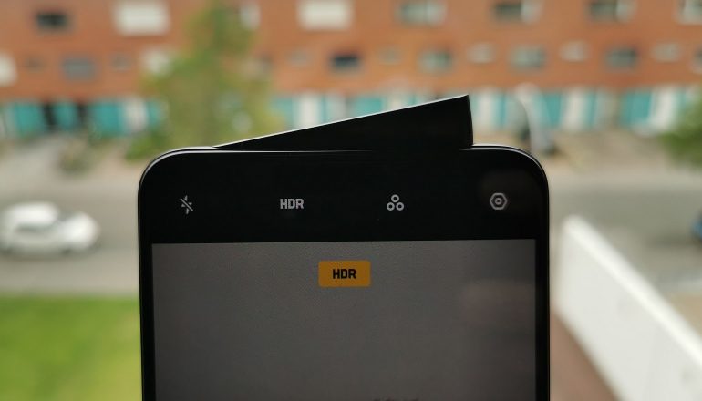 Dan de schuine pop-up camera aan de bovenkant. Die herbergt een camera van zestien megapixel, de flitser voor de camera’s aan de achterzijde en een oorspeaker. Over deze camera ben ik echter wat minder tevreden. In de normale modus zit de camera er soms naast met scherpstellen. Uiteindelijk krijg je echter wel een fraaie foto, maar je moet soms even spelen en een foto opnieuw maken. Dit is anders bij de portretmodus voor de frontcamera, want de AI en software is hier veel te agressief. Regelmatig sta ik met een glimmend en glanzend hoofd op de foto, waarbij het lijkt of ik rechtstreeks uit een fantasiewereld kom stappen. In deze portretmodus heb je niet zoveel opties om zaken aan te passen, dus een update vanuit Oppo om de AI en software iets minder agressief te maken zou op prijs gesteld worden.