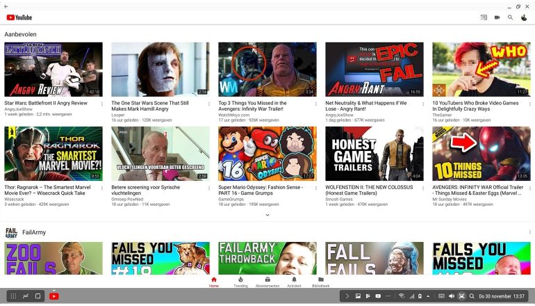 Dit is geen groot probleem, maar inmiddels weten we dat dit beter en netter kan, dus hopelijk verandert dit nog in de toekomst. Sommige apps kunnen overigens niet in een volledig scherm weergeven worden en die apps herken je al gauw. Die hebben namelijk naast het kruisje geen geen icoon van een dubbel venster staan. Bijvoorbeeld de YouTube- en Chrome-apps kunnen dit wel, maar de applicaties van TV Showtime en Stack weer niet. Dit is iets waar je genoegen mee moet nemen, aangezien het er niet op lijkt dat dit snel verandert.