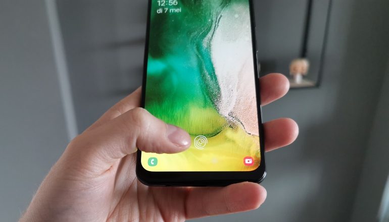 Onder het display vinden we tevens een vingerafdruksensor onder het scherm. Een functie die we voornamelijk bij vlaggenschepen tegenkomen, maar tegenwoordig ook steeds meer bij de goedkopere midrangers. We zagen dit eerder bij de Oppo RX17 Neo en nu dus ook bij de in prijs vergelijkbare Samsung Galaxy A50. Het resultaat valt echter toch tegen. Dit moet namelijk de traagste vingerafdruksensor onder het scherm zijn die we tot nu toe zijn tegengekomen. De snelheid is wisselend, maar regelmatig duurde het twee volle seconden om het toestel te ontgrendelen. Gaan we er vanuit dat een mens honderd keer per dag de smartphone ontgrendeld, dan gooi je dagelijks toch een paar minuten weg met wachten op het ontgrendelen van dit toestel. Het is een leuke gimmick, maar zorg er dan wel voor dat het soepel en snel werkt. Een traditionele vingerafdruksensor op de achterkant of de zijkant van het toestel was wellicht een betere optie geweest. Deze werken veel sneller dan deze vingerafdruksensor onder het scherm van Samsung. Overigens werkt Samsung nog wel aan de snelheid van de vingerafdruksensor middels updates, maar van echte vooruitgang lijkt nog geen sprake. Pluspunt is wel dat je minder nauwkeurig je vinger hoeft te plaatsen. Ook al zit je een beetje naast de aangegeven plek, dan nog zal de sensor je vingerafdruk herkennen. Het duurt alleen te lang.