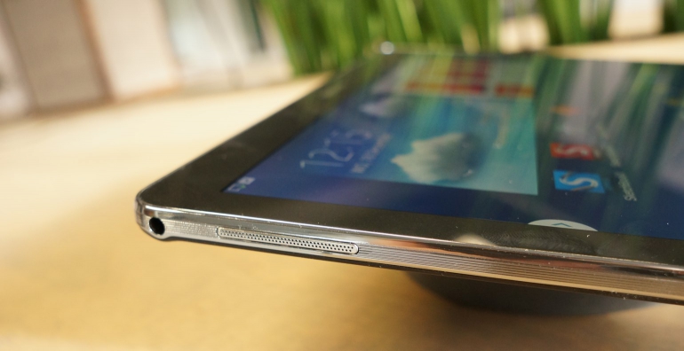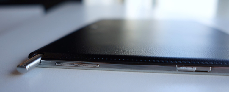 Waar de speakers op de eerste generatie Galaxy Note 10.1 (en sommige andere Samsung tablets) nog aan de voorkant zaten zijn ze nu verhuisd naar de zijkant van de tablet. We waren erg enthousiast over speakers aan de voorkant want het geluid ging dus voor de verandering richting gebruiker in plaats van van de gebruiker af. Nu de speakers aan de zijkanten zitten gaat daarvan dus wat verloren, maar opvallend weinig. Het is nog altijd een stuk beter dan speakers die aan de achterkant van een tablet zitten en de kwaliteit van de speakers op de Samsung Galaxy Note 10.1 (2014) is voor een tablet best indrukwekkend. Het volume kan hoog zat om bruikbaar te zijn in de meeste situaties en vervormt ook op die hogere volumes niet noemenswaardig. Natuurlijk ontbreekt een goede weergave van lage (bass) tonen maar in het algemeen zijn het goed bruikbare speakers.