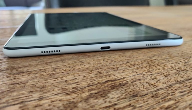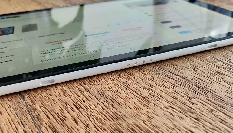 Er is geen ondersteuning voor de stylus waarmee de Galaxy Tab S4 wel kan worden gebruikt. Maar omdat Samsung wel de slimme aansluiting heeft toegevoegd aan deze midrange tablet, kun je een aantal accessoires gebruiken die je mogelijk bij je Tab S4 hebt gekocht, zoals bijvoorbeeld de standaard waarmee je de tablet rechtop overeind zet en ondertussen kan opladen. Ondanks het feit dat de tablet met zijn 10,5″-scherm redelijk fors is, kun je hem toch gemakkelijk meenemen wanneer je met een tas op pad gaat.
