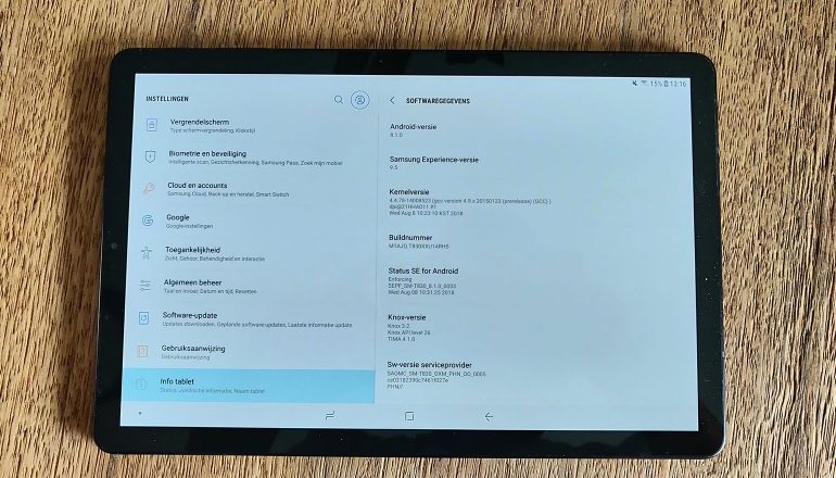 Android Pie is al verkrijgbaar, maar de Samsung Galaxy Tab S4 wordt geleverd met Android Oreo, met daaroverheen natuurlijk de recente versie van de Samsung Experience (versie 9.5). Daar is op zich weinig mis mee, aangezien Android Oreo energiezuiniger en overzichtelijk is. Een groot nadeel is echter het niveau van de Android-beveiligingspatch. Die staat namelijk nog op 1 juni 2018, terwijl we vlak voor het recenseren van het apparaat nog een update hebben uitgevoerd. Dat kan echt niet op een high-end model.
