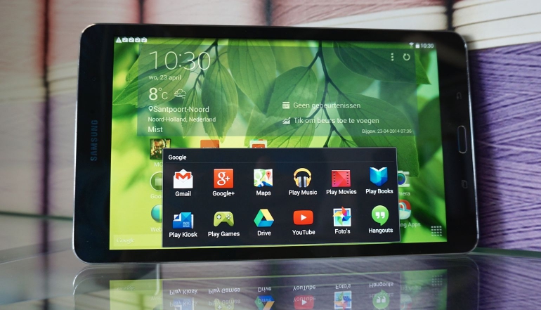 Hier moet ik natuurlijk weer het vaste riedeltje over Android en de Samsung skin gaan afdraaien, toch zal ik proberen het in dit geval wat korter te houden. Want ja, deze tablet draait op Android en wel op de nieuwste versie Android 4.4 KitKat, en ja, natuurlijk heeft Google deze tablet zijn zege (en dus alle apps en diensten) meegegeven, en ja, de Samsung skin is wederom alom aanwezig.