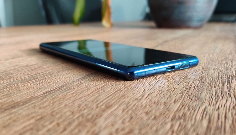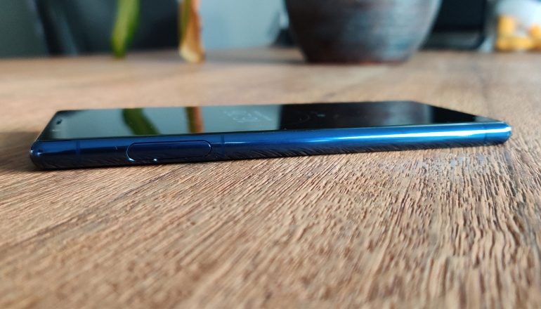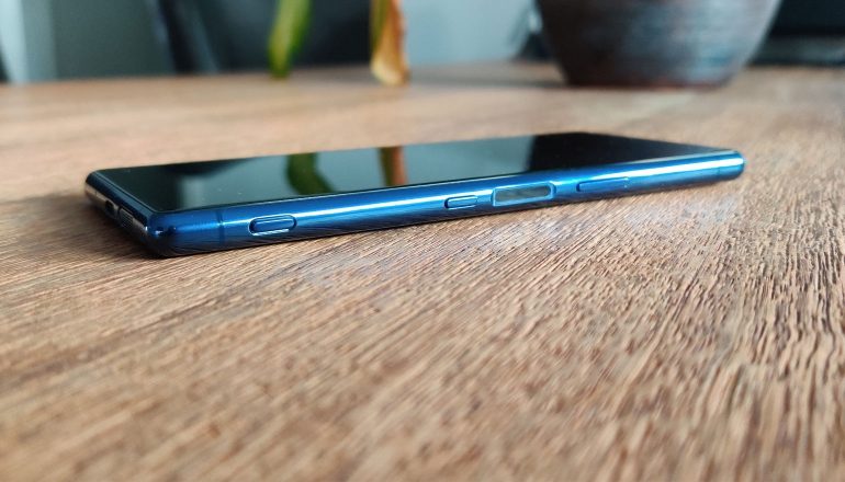 Qua lengte, 158 millimeter, is de Sony Xperia 5 iets korter dan bijvoorbeeld de OnePlus 7T Pro, en bijna een centimeter kleiner dan zijn voorganger. De breedte is 4 millimeter smaller, daar zul je in de praktijk weinig van merken. Links zit de lade voor de simkaart en de micro-sd-kaart. De lade beschikt over een kleine inkeping, die je er dus zonder hulpmiddel prima uit kunt krijgen. Onderop zit een usb-c-poort en een enkele speaker, terwijl we aan de rechterkant alle knoppen en de vingerafdrukscanner aantreffen.