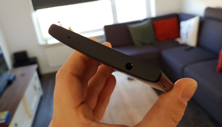 Een erg vreemd aspect vinden we de trede aan de zijkant. Daar kun je de simkaart in stoppen, evenals een micro-sd-kaart. Wanneer je die kaart eruit wil halen (of erin wil stoppen), dan moet je die lade eruit halen. Maar dat betekent ook dat je de simkaart automatisch verwijdert, waardoor de smartphone opnieuw opstart. Bovendien zal de smartphone nog eens opnieuw opgestart moeten worden wanneer je de micro-sd-kaart (en dus de simkaart) opnieuw in de opening stopt. Dat is echt een vreemde gang van zaken, eentje die je (bijna) niet ziet.
