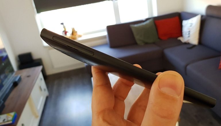 Een aspect dat we nog niet eerder hebben besproken in deze recensie is het feit dat de smartphone ook relatief breed is. Dat komt doordat het scherm dus geen verhouding heeft van 2:1, maar 16:9. Daardoor kan het zijn dat mensen met grotere handen het apparaat gemakkelijker vast kunnen houden, juist omdat het niet zo smal is. Bovendien is de aan-uitknop goed bereikbaar met je rechterduim, aangezien die net boven het midden zit. Datzelfde geldt voor de volumeknoppen — je hoeft het toestel niet te verschuiven om op de knoppen te drukken.