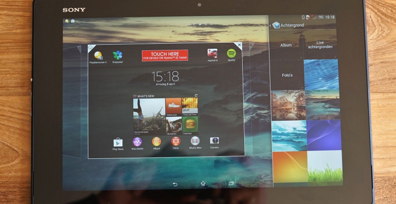 De Sony Xperia Z2 Tablet draait op Android 4.4.2 KitKat en dat is de laatste versie van Android, hartstikke up-to-date dus. Natuurlijk heb je toegang tot alles wat Google te bieden heeft aan apps en diensten, denk hierbij aan Google Now en de Play Store. Verder zul je niet echt merken dat deze tablet helemaal op het nieuwste versie van Android draait, want Sony maakt gebruikt van een eigen skin, en laag over Android heen die zo’n beetje ‘alles’ aanpast.