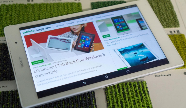 Het scherm van de de Sony Xperia Z3 Tablet Compact is van heel aardige kwaliteit, maar haalt het niet bij schermen van de concurrentie en helaas ook niet in vergelijking met schermen van andere Sony-producten. Sony heeft een goede reputatie op schermgebied en met hun Triluminos-techniek gooiden ze lange tijd hoge ogen. Het scherm van de Sony Xperia Z3 Tablet Compact is echter voor onze smaak, en die van veel andere reviewers, aan de veel te blauwe kant afgesteld. En hoewel je er best aan kan wennen is het best een beetje jammer, en zou je kunnen zeggen dat je ogen ook iets eerder moe worden van het extra wit. Net zoals een pak sneeuw je ogen sneller vermoeit.