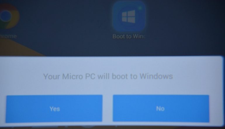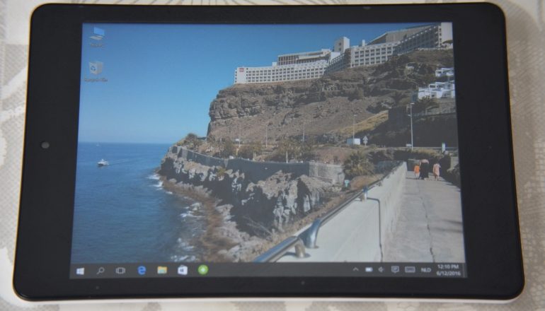 De specificaties vermelden voorts een Intel Baytrial processor. Deze is kennelijk gekozen om Windows terwille te zijn. Voor Android had het niet gehoeven. Dat er 2GB ram bij zit, is voor deze lage prijs eveneens bijzonder. Minder blij zijn we met de 32GB geheugen, die is opgesplitst tussen de twee besturingssystemen. Omdat die besturingssystemen zelf ook enkele gigabytes in beslag nemen, blijft daar niet zoveel van over. Zo’n 10GB per operating system. Gelukkig is er een sleuf voor een micro sd-kaart, waarmee het geheugen kan worden uitgebreid.