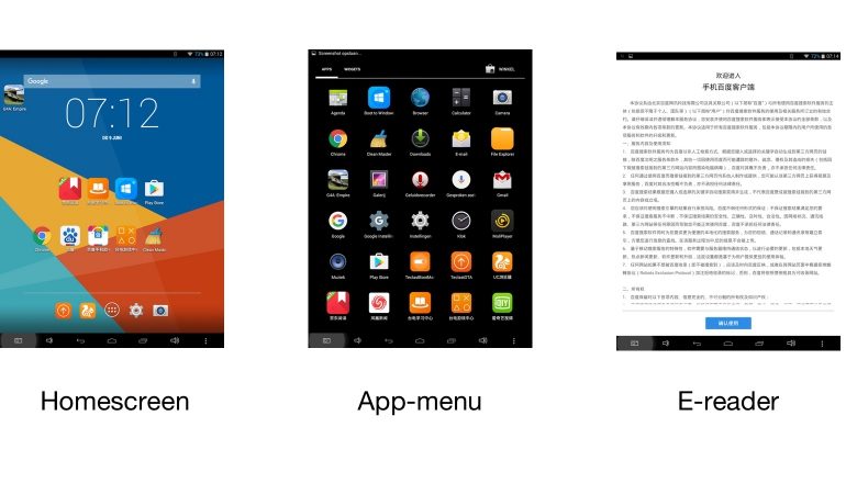 Onder Android vinden we in tegenstelling tot de Windows-sectie een hele hoop bloatware. Veel van deze apps kunnen we door de Chinese tekens niet thuis brengen. Als we ze openen, krijgen we een e-reader te zien met alvast wat boeken in het Chinees, een sociaal netwerk dat in China populair is (Baidu), en nog wat zaken waarvan we niet begrijpen wat er staat. Gelukkig laten die apps zich makkelijk verwijderen.