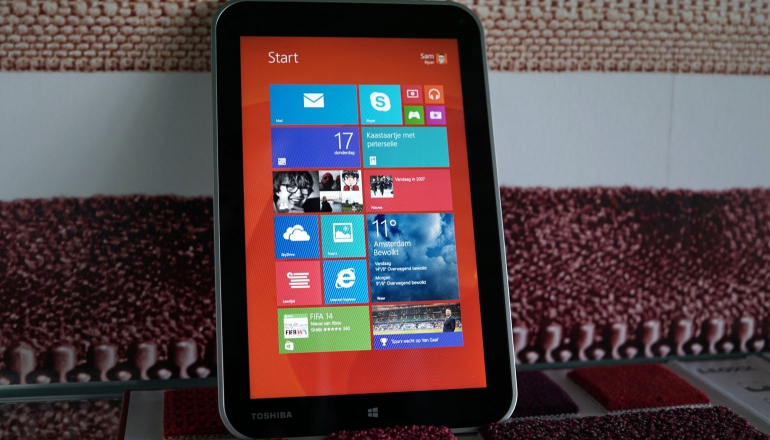 Qua kleurweergaven, contrast en kijkhoeken scoort de Toshiba Encore ook gewoon heel redelijk. Ips-panelen zijn al een jaar of wat de standaard en we vinden er bijna geen echt slechte meer tussen. De kleurweergaven zijn dus redelijk goed, de helderheid is voldoende om met wat feller omgevingslicht te kunnen werken, en het contrast ligt op gemiddeld niveau. Waar het scherm in dit geval tegenvalt is vooral de behuizing. Het paneel ligt relatief ver onder de glazen beschermplaat en daardoor is het totaalpakketje een stuk gevoeliger voor reflecties. De glazen plaat zelf zou ik willen omschrijven als extreem gevoelig voor vingerafdrukken, jammer. Het is en blijft jammer dat fabrikanten blijven besparen op iets simpels als een coating, want het verschil in gebruik is echt enorm.