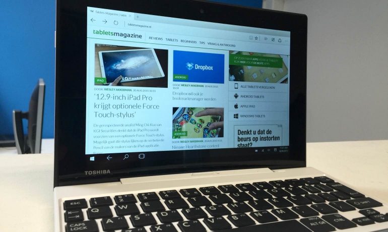 Eén van de blikvangers op deze Toshiba Satellite Click Mini is natuurlijk het scherm. Met een resolutie van 19200 x 1200 pixels op een relatief klein 8.9-inch beeldscherm hebben we het over een hoge pixeldichtheid. Dit betekent dus erg scherpe teksten en veel details in bijvoorbeeld afbeeldingen en PDF-bestanden. Hoewel hoge resolutie beeldschermen ondertussen wel zo’n beetje de standaard genoemd kunnen worden is het voor veel Windows-gebruikers nog wel een beetje een nieuwigheid.