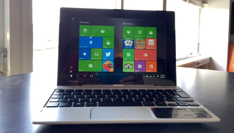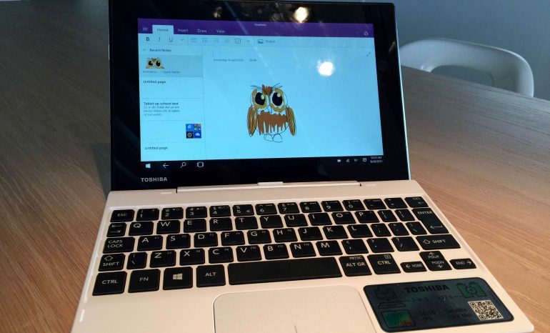 De Toshiba Satellite Click Mini wordt geleverd met Windows 8 maar natuurlijk kun je direct updaten naar Windows 10. Je hebt hier ruim de tijd voor, want de update is gratis zolang je dat binnen het eerste jaar doet. De update neemt overigens een hoop tijd in beslag, dus hou er rekening mee dat je en hele dag uit moet trekken voor het constant klikken op allerlei dialoog-boxjes en aanverwante updatevragen.
